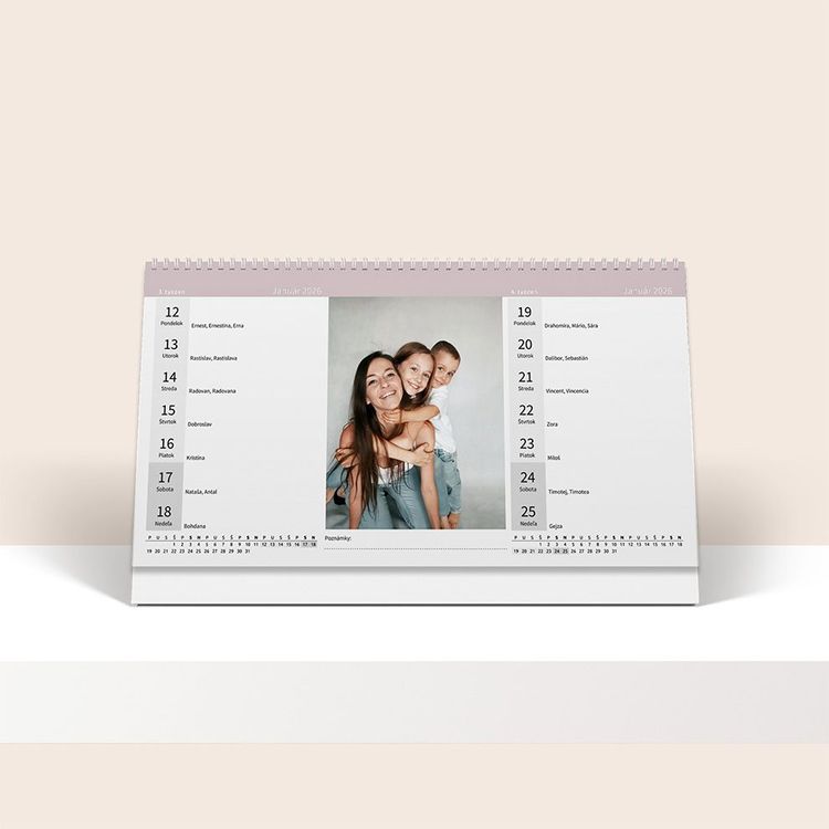 Vytvorte si fotokalendár z vlastných fotografií s prehľadným kalendárom. Obsahuje slovenské sviatky a mená. Možnosť zmeny farebnej šablóny.